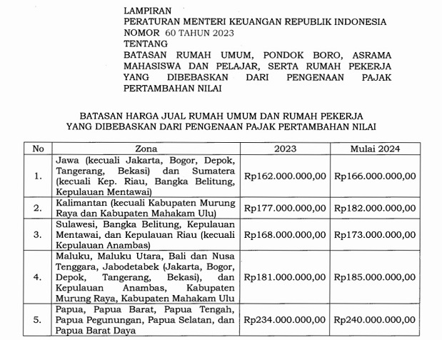Tahun 2023, sesuai peraturan yang ditetapkan pemerintah, harga rumah termurah akan naik sekitar 12 juta, sehingga harganya menjadi Rp. 162.000.000,-