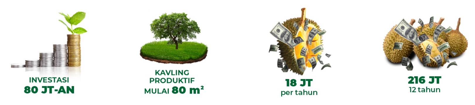 Dengan modal 80 jutaan untuk luas kavling 80 m2, Developer memberikan perkiraan keuntungan per tahun hingga 18 juta rupiah. Hal ini tentunya sudah melalui pengalaman yang dialami oleh Developer, karena lahan yang dimiliki Developer adalah memang lahan kebun durian yang dimiliki oleh pihak Developer sendiri.