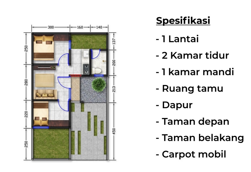 Desain denah ruangan pada perumahan ini bisa menjadi inspirasi. Desain tipe 30 ini terasa berbeda dengan tipe 30 pada umumnya. Tata letak ruangan juga terasa maksimal tanpa menghilangkan nuansa hijau (taman). Bagaimana dengan tata letak kamar tidur, ruang tamu / keluarga, dapur, kamar mandi dan carport ? Yuk kita bahas lebih lanjut.