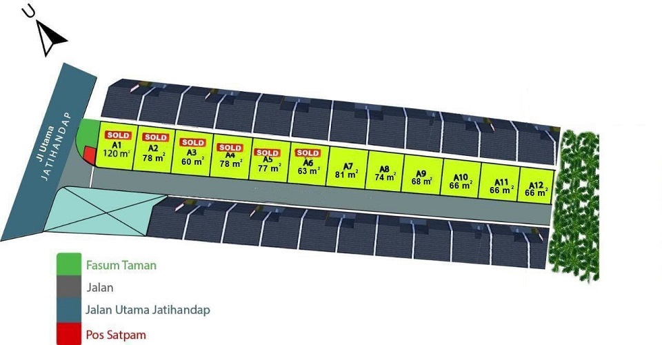 Unit yang dipasarkan ada 13 unit dengan luas tanah bervariasi. Pada setiap kavling, konsumen bisa memilih unit yang ingin dibangun, yaitu tipe 33 (1 lantai) atau 50 (2 lantai).