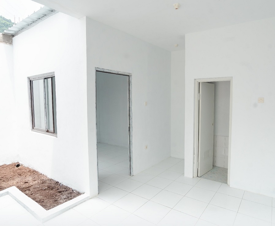 Di antara kamar depan dan belakang ada ruang terbuka yang bertujuan untuk memberikan sirkulasi udara yang lebih maksimal. Bagian terbuka tersebut sudah diberikan tambahan semacam atap kanopi agar air hujan dan sinar matahari tidak langsung masuk ke area tersebut namun masih memberikan peluang angin untuk masuk melalui titik tersebut.