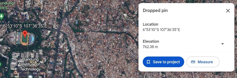 Setelah diklik “info” maka akan muncul informasi ketinggian pada titik tersebut yang bisa dilihat pada informasi “elevation”.