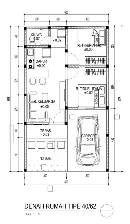 | Lebar muka rumah | : 6 meter |