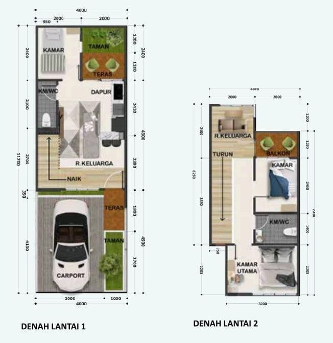 | Lebar muka rumah | : 4 meter |